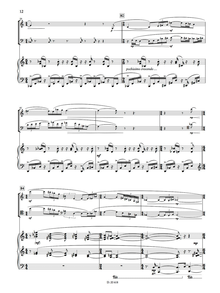 The main theme of this composition in one movement is presented in a variety of musical environments throughout the piece. In an allegorical sense, it is as if the listener was walking down a hallway lined with windows, periodically catching a view of the exterior. The outside world always stays the same, but the perspective of the viewer/listener changes from window to window...a chain pf parallax views.